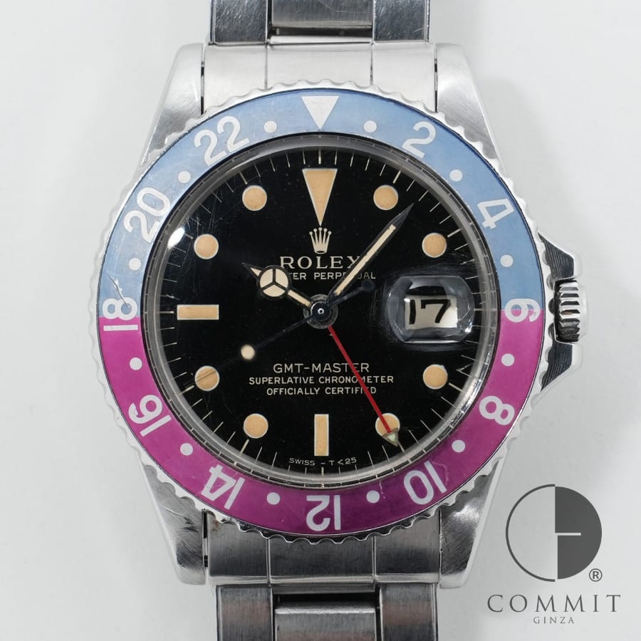 【天白】ロレックス GMTマスター 1675 フクシア フチなし 紫 水色 ヴァイオレット SS 83番台 オールトリチウム ヴィンテージ メンズ